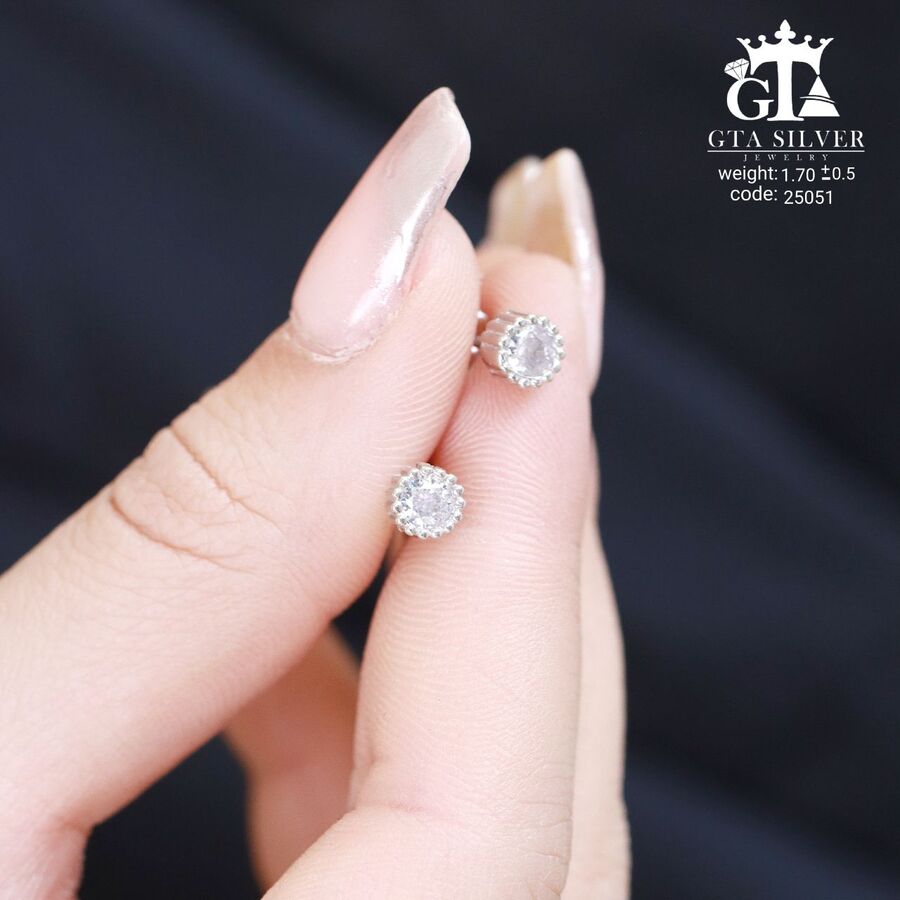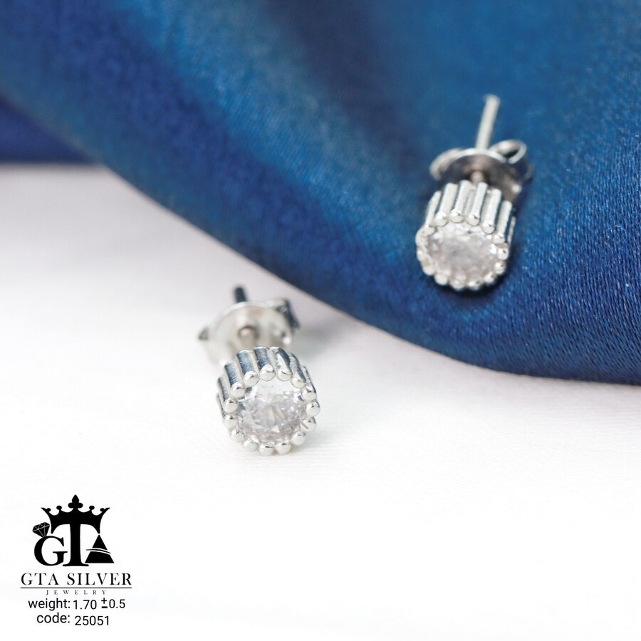 گوشواره مینیمال نقره مدل میکرو همراه با روکش آبطلای سفید؛ عیار 925، تمامی نگین های این گوشواره جدید و ظریف با روش جدید میکروستینگ مخراج کاری شده است.