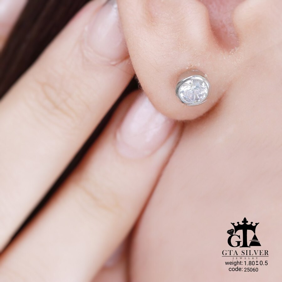 گوشواره مینیمال نقره مدل میکرو همراه با روکش آبطلای سفید؛ عیار 925، تمامی نگین های این گوشواره جدید و ظریف با روش جدید میکروستینگ مخراج کاری شده است.